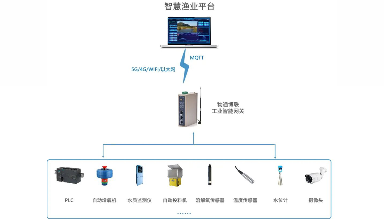 在水产养殖池塘或养殖箱内安装各类水质监测传感器,如溶氧传感器、酸碱度传感器、氨氮传感器等,通过物通博联的工业智能网关将采集到的水质数据实时传输至水产养殖水质监控平台。平台对数据进行实时分析和处理,当溶氧含量过低、酸碱度失衡或氨氮含量超标时及时发出预警。根据水质数据自动控制增氧设备、水质调节设备等,实现水质的远程调节。同时,平台具备养殖数据分析功能,为养殖户提供决策支持。