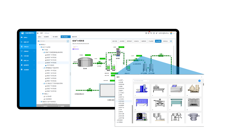 提供各种可视化组件,用户可以根据项目及应用需求,零编程、搭积木式的实现对现场设备和现场项目的工艺流程组态监控。