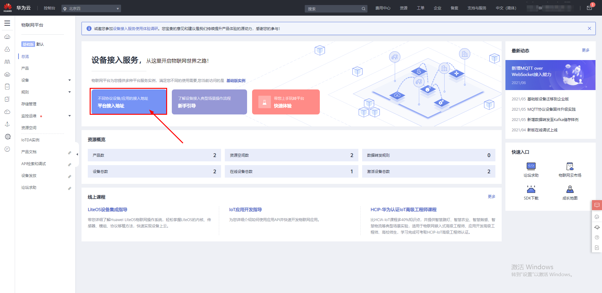 华为云地址:https://console.huaweicloud.com/iotdm/?region=cn-north-4#/dm-portal/home