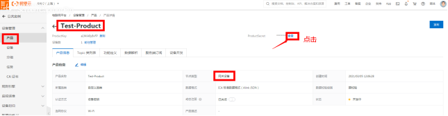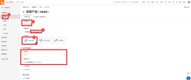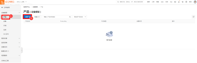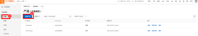 产品概述:阿里云的产品相当于物通博联的机型,首选建立网关的基本信息,基本信息包含产品和设备。 步骤详见以下内容: