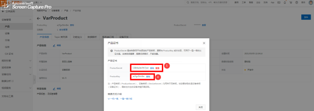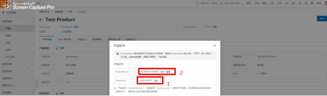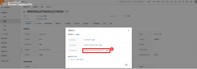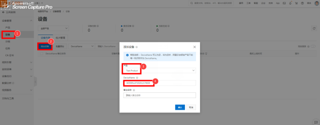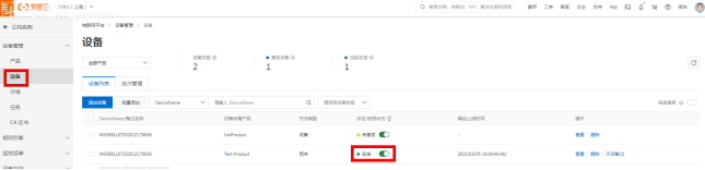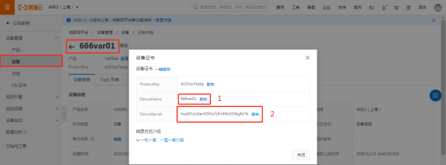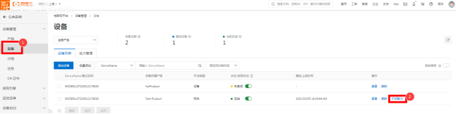 选择刚添加产品设备的名称,这里DeviceName填的是设备的名称定义(可根据实际场景)详见图2