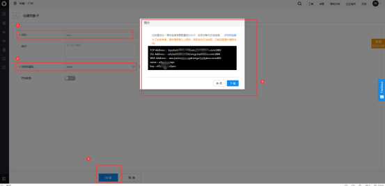 创建物影子后提示中的信息要记录起来,用来后续的连接使用。