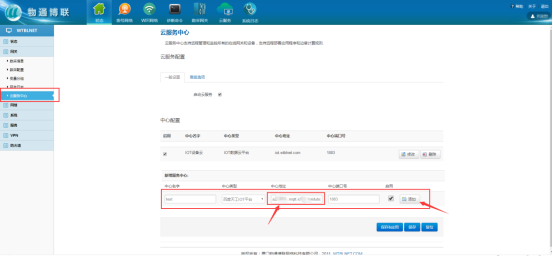 中心地址要填物影子连接信息中的“TCP Address”,端口号1883,然后再进行修改云中心信息: