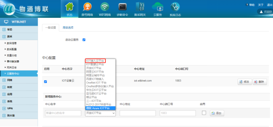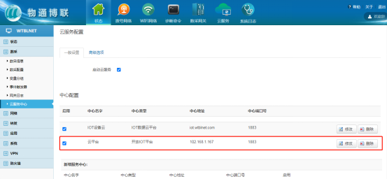 (1)IOT数据云平台:为我司公网地址,数据可上传至我司IOT平台进行数据监控以及远程维护、远程部署配置。