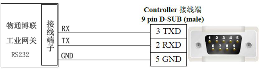 | 网关端子口接线 | 电源+ | 地线- | 5 GND | 3 TXD | 2 RXD |