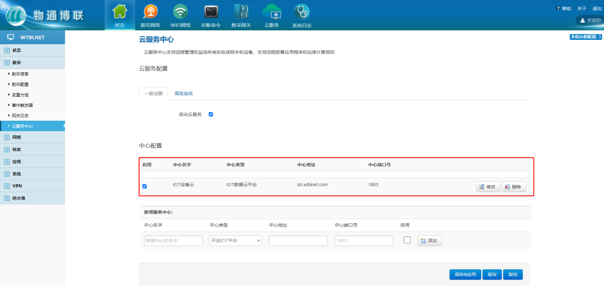 产品系列 工业智能网关 物通博联·WG系列工业智能网关是一款支持采集各种PLC,仪器仪表,水环保,电力设备,CNC等各种工业设备数据,具有协议解析,边缘计算的高可靠性工业智能网关,是构建工业互联网系统的核心边缘节点。 PLC网关 MQTT网关 OPC网关 Modbus网关 协议转换网关 水文水利网关 环保采集网关 能源采集网关 机床采集网关 了解更多 工业数采终端 物通博联·WD系列工业数采终端,主要实现对现场工业设备的数字量DI、DO,模拟量AI,AO的采集和控制,实现LORA本地组网和4G数据上云的功能,从而实现对现场传感器、执行机构、指示灯等数采和控制。 LoRa终端 LoRa网关 DTU RTU 4G无线IO WIFI无线IO 了解更多 网段隔离器 物通博联WC系列网段隔离器适用于生产网络对 PLC、HMI、CNC、DCS、MES等网络通讯和数据采集,兼有跨网段隔离和IP转换的功能。车间多个设备,如果有不同网段的IP地址,则可以统一成同一网段的IP地址,进行设备(PLC、CNC)的在线编程、数据采集、远程管理等各种跨网段访问。 IP重命名 跨网段访问 网络隔离防护 VPN组网 NAT转换 工业设计 了解更多 工业路由器 物通博联·WR系列工业无线路由,是一款支持5G/4G/WIFI/以太网等方式联网接入,支持5G/4G组网、WIFI组网、VPN组网,为现场设备提供低时延、高可靠、高安全的网络接入,从而实现大规模设备组网应用。 5G/4G蜂窝组网 WiFi本地组网 VPN虚拟组网 断网重连 远程管理 高安全可靠 了解更多 工业设备数据平台 物通博联·工业设备数据平台是一款高并发的工业设备远程管理和工业设备数据可视化的云平台,广泛应用于智能工厂数采中台、远程设备运营管理平台、各行业的物联网数据云平台等。 海量设备接入 高效数据采集 丰富组态控件 强大的数据分析 预防式设备维护 丰富的API接口 了解更多 设备远程维护系统 物通博联·设备远程维护系统是一套实现对分散式设备远程维护和运营的软硬件系统,为工程师搭建一条通往远端设备现场的安全数据通道,实现对现场设备(PLC)的远程配置、远程诊断、远程调试和远程升级程序。 设备远程配置 设备远程调试 远程上下载程序 设备远程维护 设备远程监控 设备预防式维护 了解更多