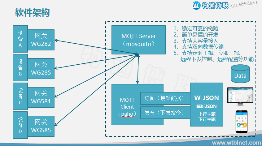 MQTT作为标准物联网协议是个设备和云平台的连接,稳定可靠。所以物通博联的网关都支持MQTT协议。 采用物通博联