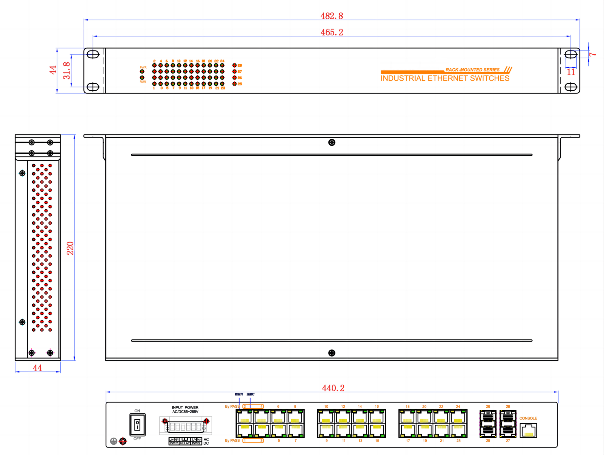 | 外形尺寸 | 宽×高×深:482.8×44×220mm |