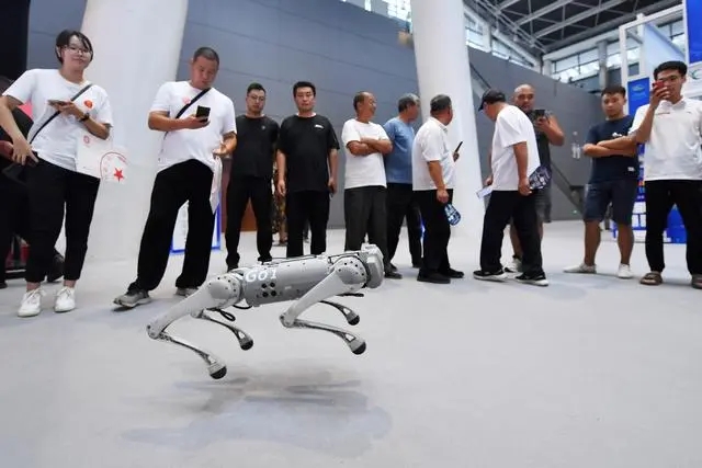 9月8日,参观者在数博会上观看四足机器人表演。 新华社记者 骆学峰 摄