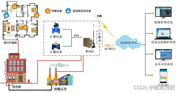 智慧供暖是物通博联针对以上问题开发的工业物联网方案。通过工业网关将供暖系统连接起来,对温度、压力、流量、开关量等等数据进行采集,实现远程监控、远程控制和远程维护。