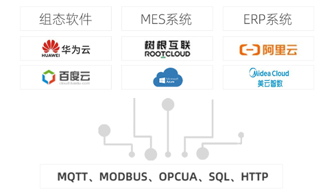 物通博联modbus转mqtt网关具有强大的云端适配能力,支持通过MQTT、MODBUS、OPCUA、SQL、HTTP数据库等方式接入远端软件平台(包含:物通博联云平台,客户自主开发的云平台,根云、美云、华为、阿里、百度、微软等IOT云平台,组态软件、MES系统、ERP系统等工业软件),支持同时接入不同种类的云平台和软件,支持定制化适配。