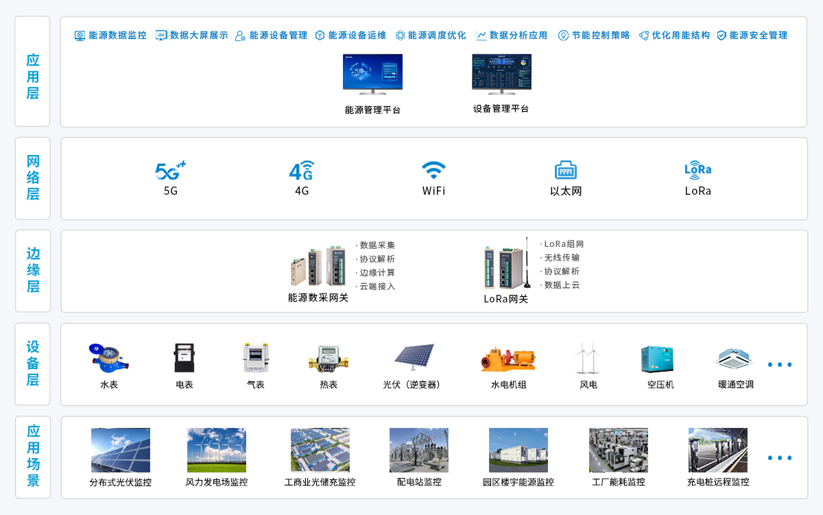 适用于工厂、园区、小区、电力、楼宇、公共设施等多种用能场景。