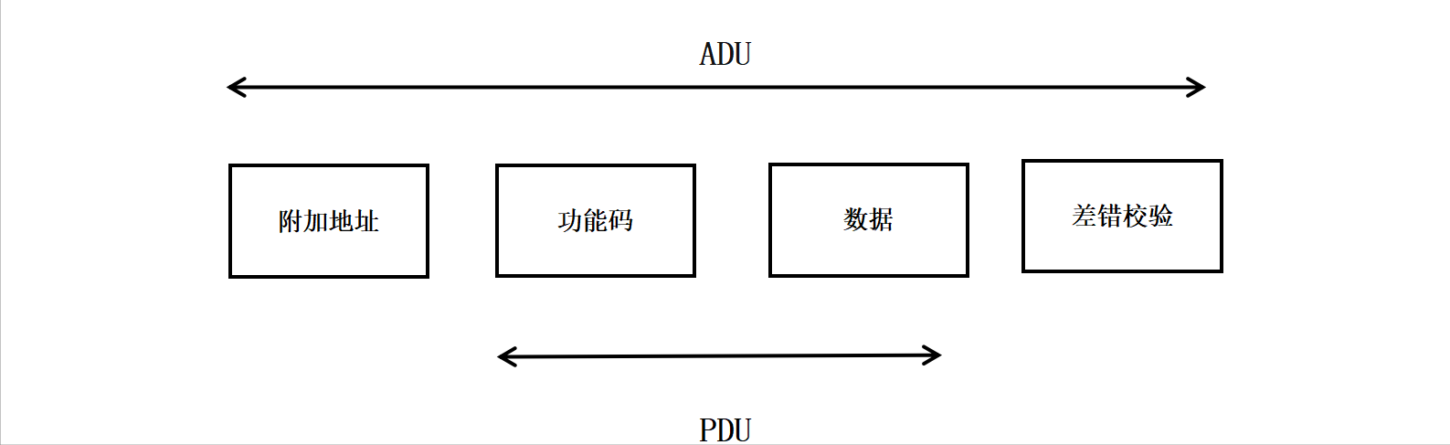 Modbus使用一种简单的MasterandSlave主从协议(客户机/服务器协议)进行通信??突Щ魑髡?,向服务器发送请求;服务器(从站)接到请求后,对请求进行分析并作出应答。其中使用的通信帧被称为应用数据单元(Application Data Unit,ADU),它包括通信地址段、功能代码段、数据段和校验段,如下图: