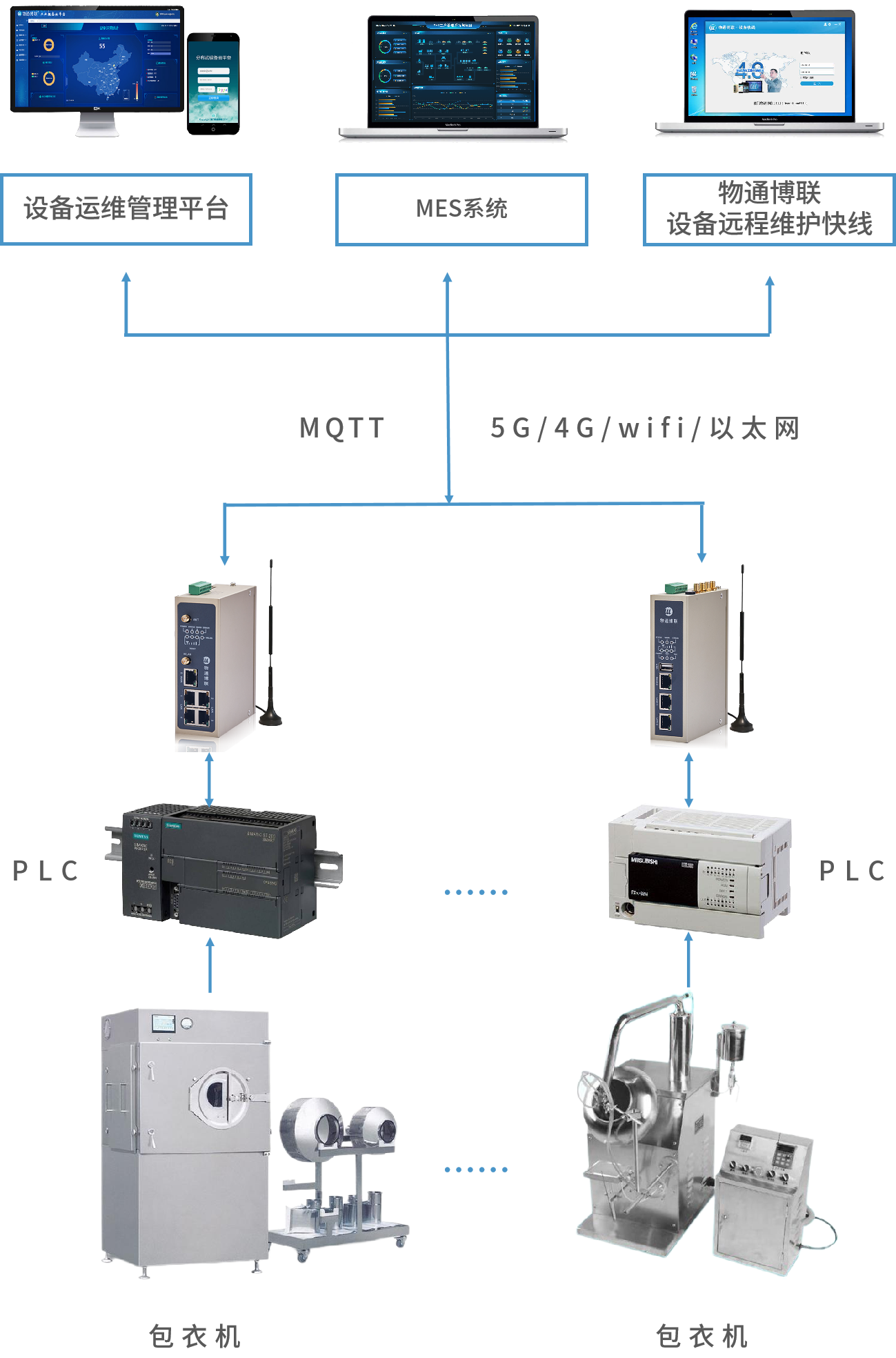 管理人员可以下发指令到PLC中实现远程控制;工程师也能实现对异地PLC的远程编程调试和远程上下载程序等操作,提高工作效率。