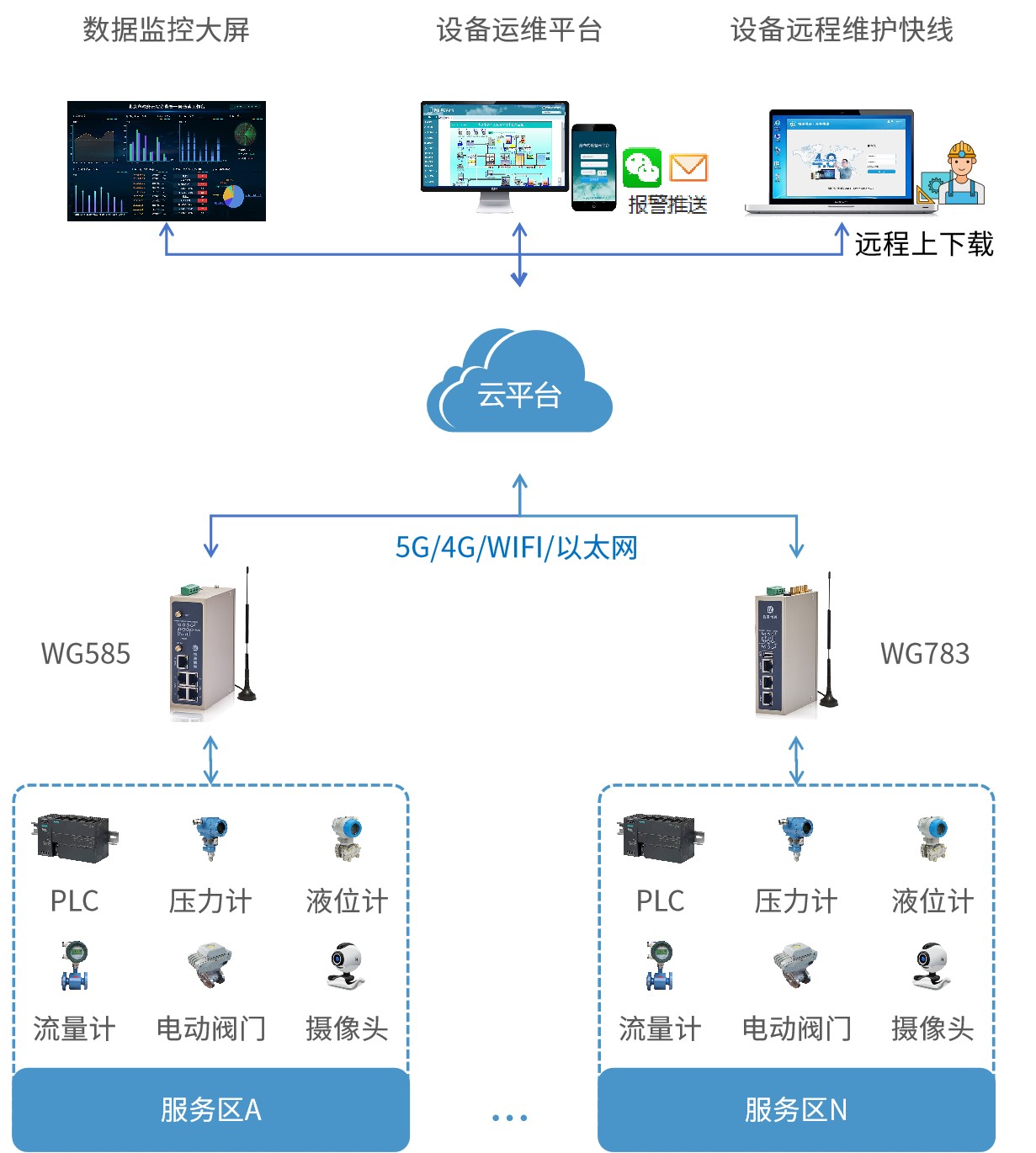 实现PLC、传感器、水电表、摄像头等设备接入与数据采集,既能将数据传输到本地监控室系统中,也能传输到高速服务区管理云平台中,确保数据安全完整。